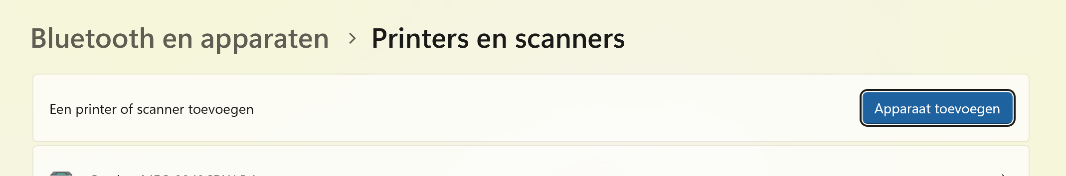 - Klik op de knop "Apparaat toevoegen" naast "Een printer of scanner toevoegen".