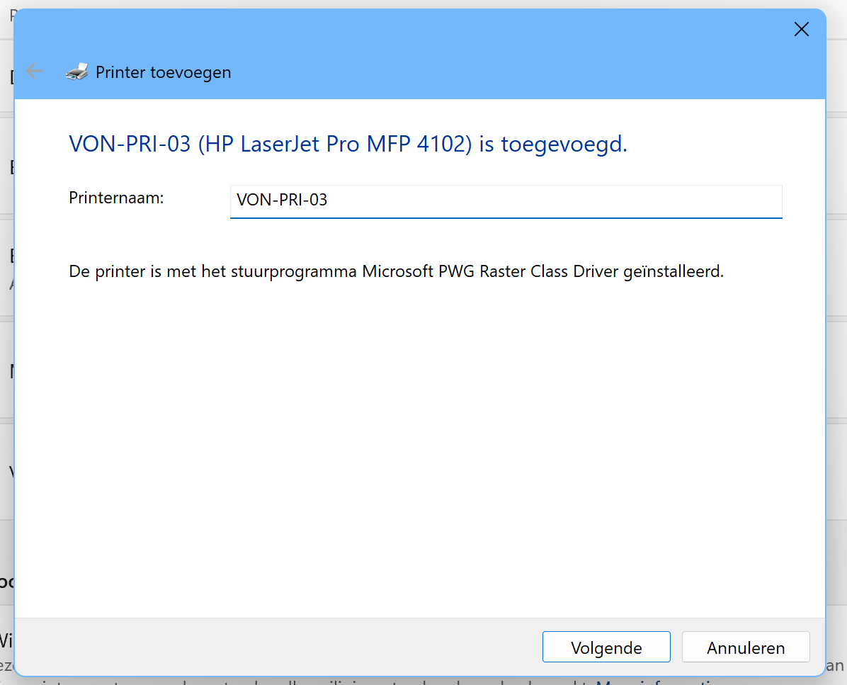 - Windows probeert automatisch de juiste printerdrivers te vinden en te installeren.