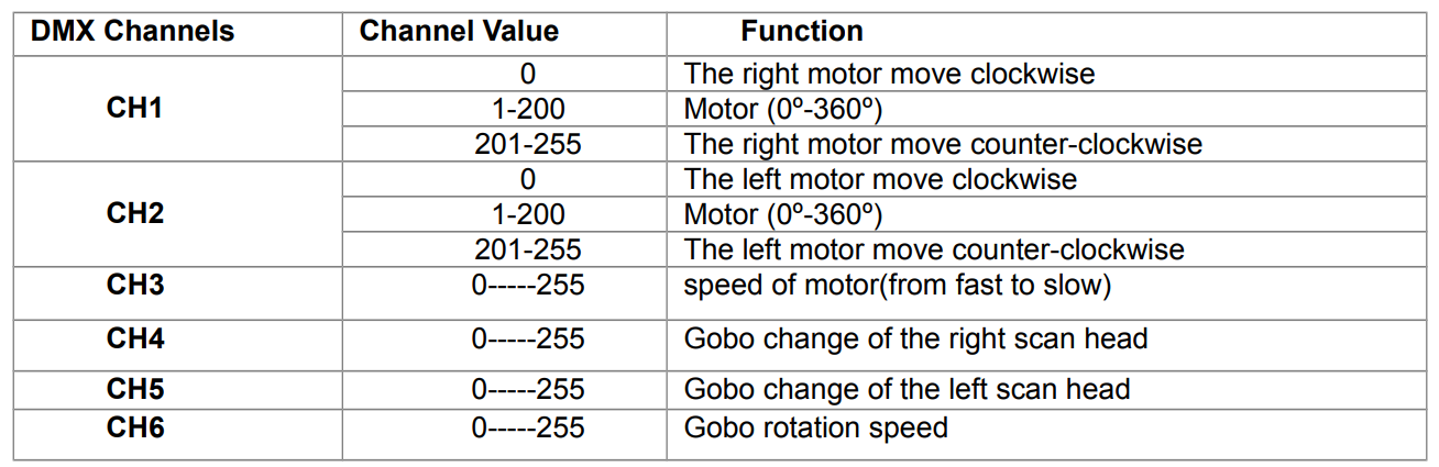 AUTO: The fixture will perform its own light show, with built-in programs, which change automatically, on a certain (non-editable) speed.