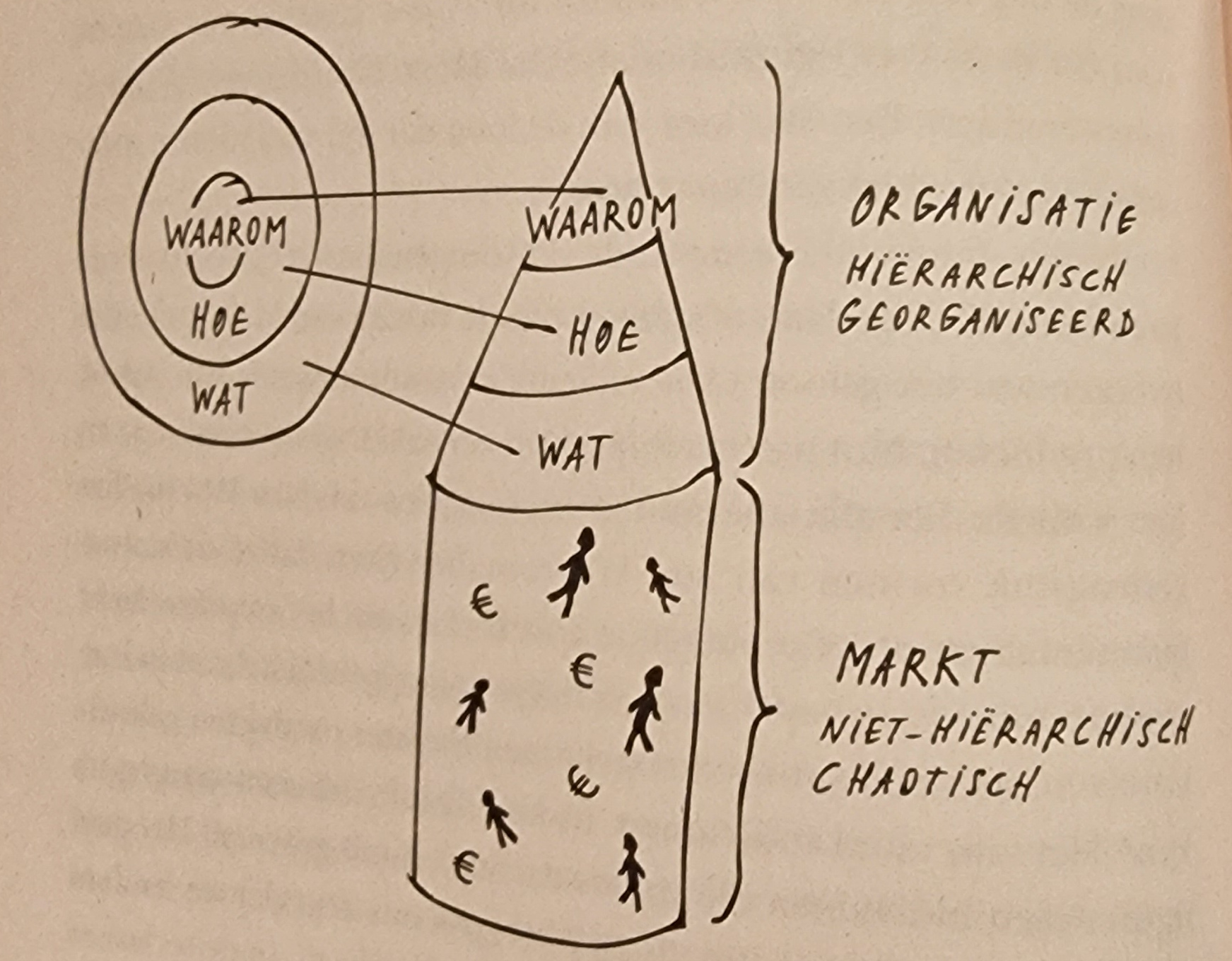 De Gouden Cirkel (The Golden Circle): Waarom, Hoe, Wat. Dit is het kernconcept van het boek. Het stelt dat effectieve leiders en organisaties communiceren van binnen naar buiten: eerst het waarom (hun doel, overtuiging), dan het hoe (hun processen, waarden) en tenslotte het wat (hun producten, diensten). De meeste bedrijven doen het omgekeerde.